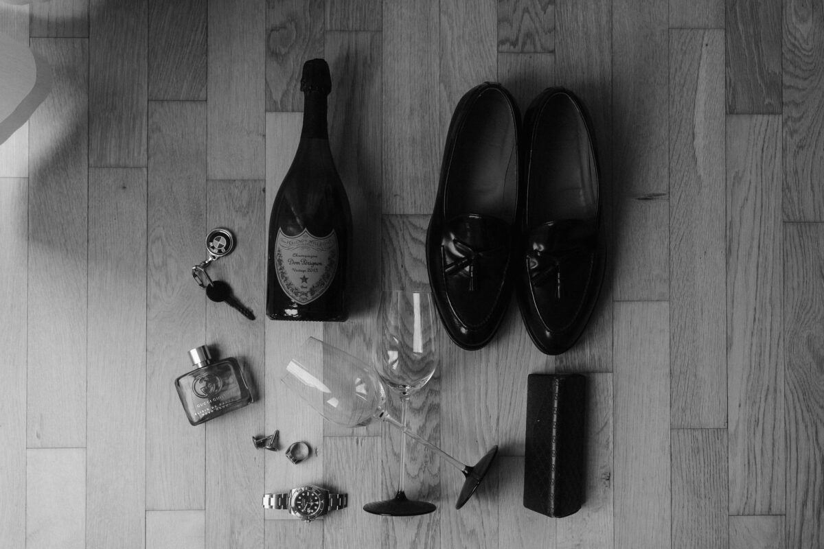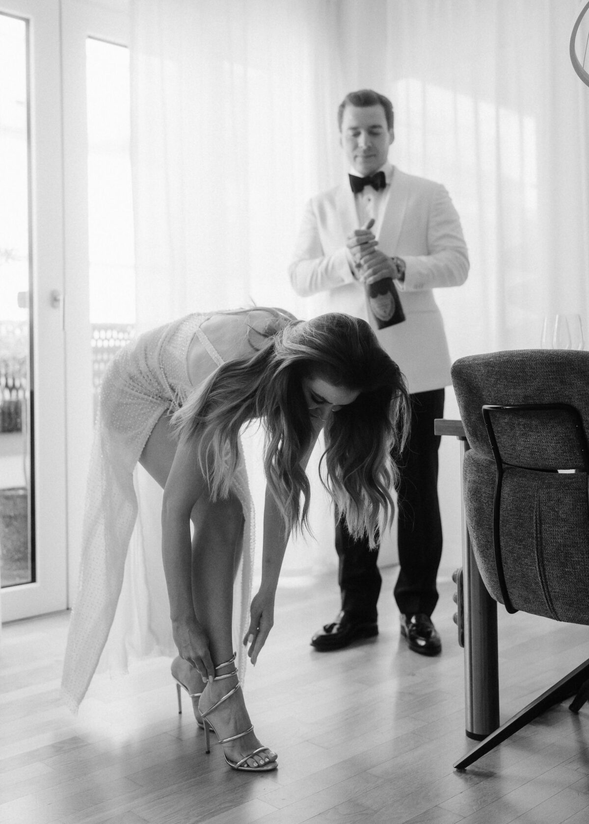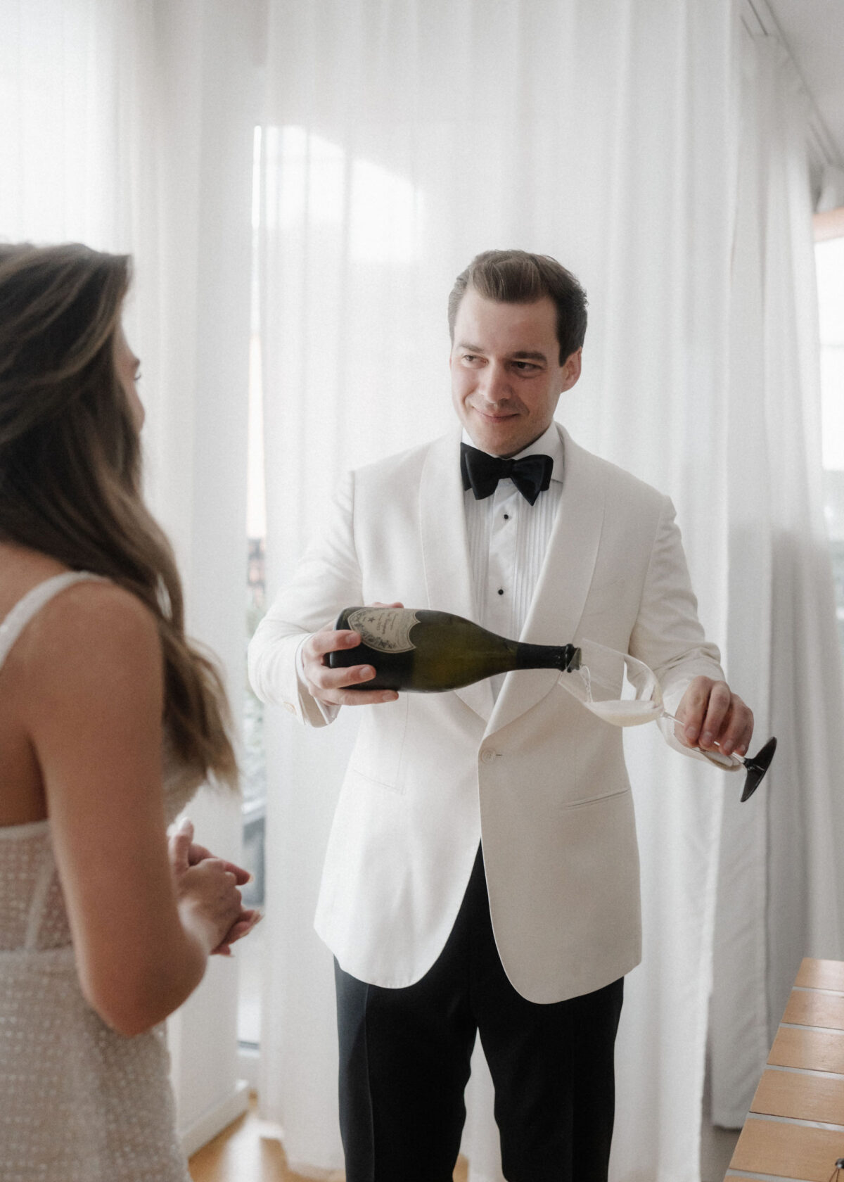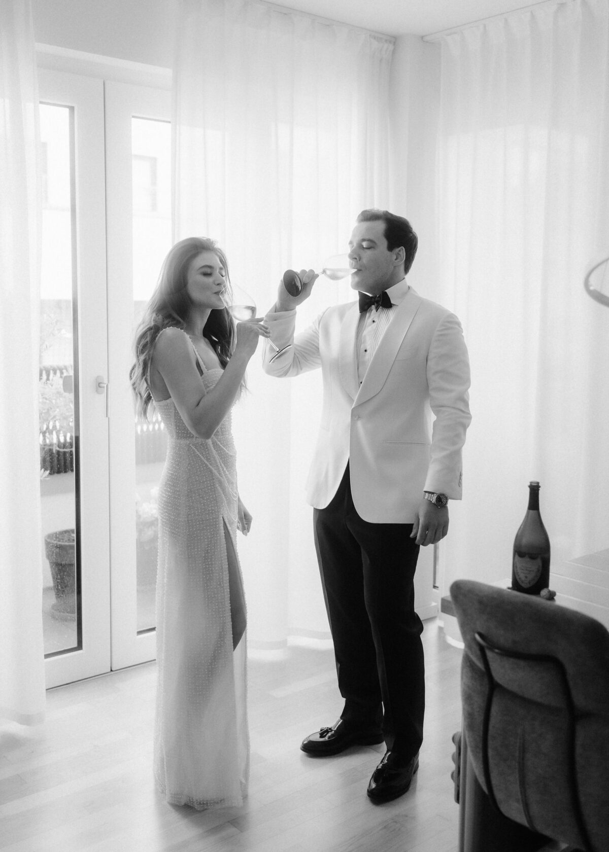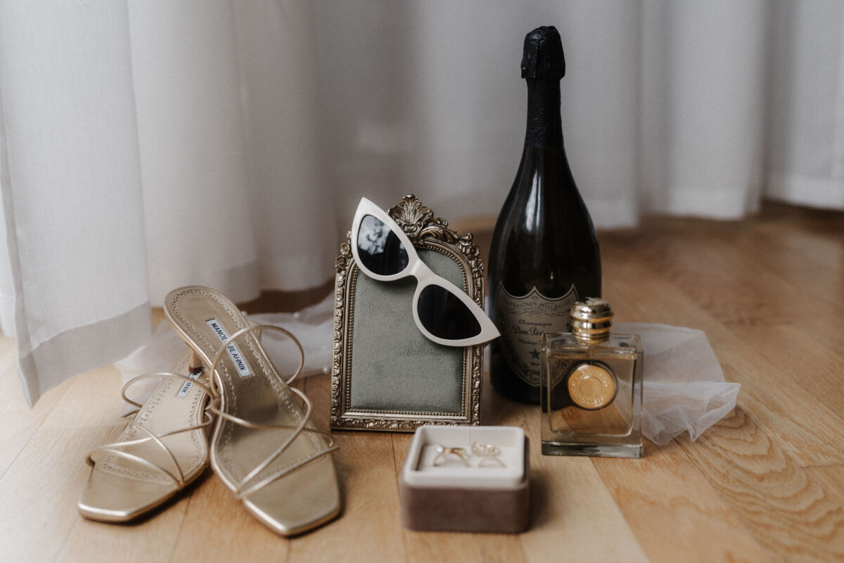 Die beiden starteten ihren Tag mit einem entspannten Getting Ready und einem anschließenden Glas Champagner in ihrer Wohnung in Frankfurt.