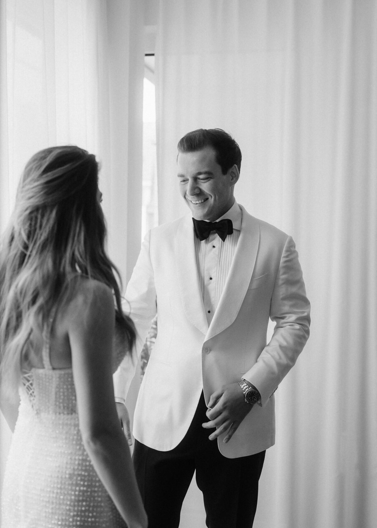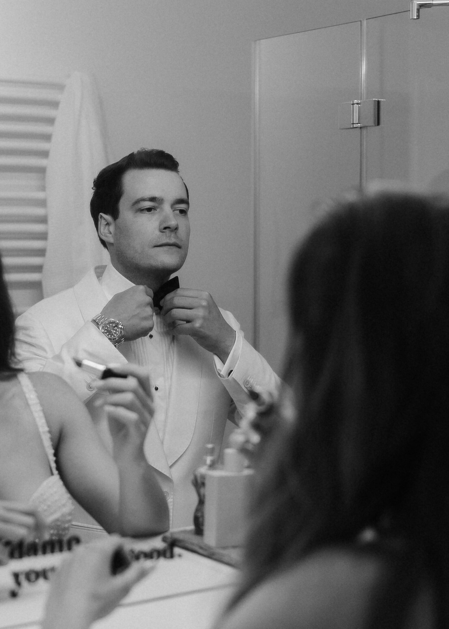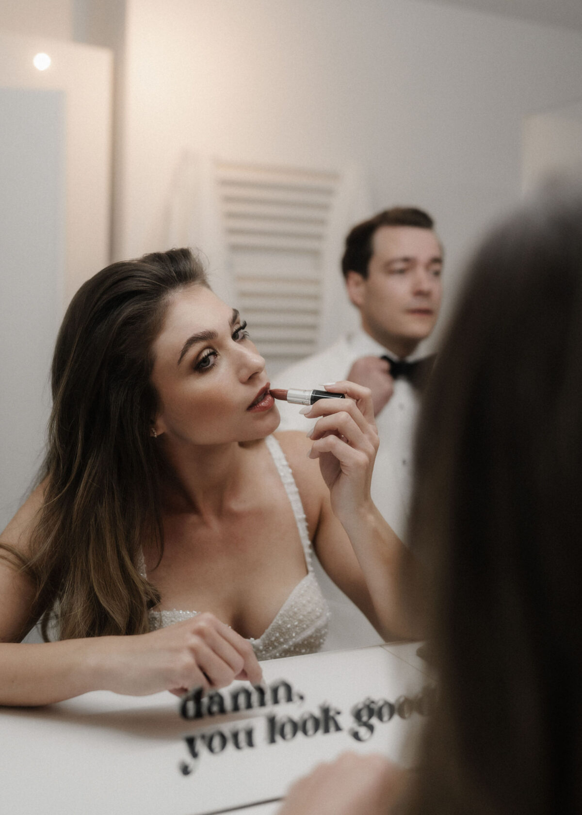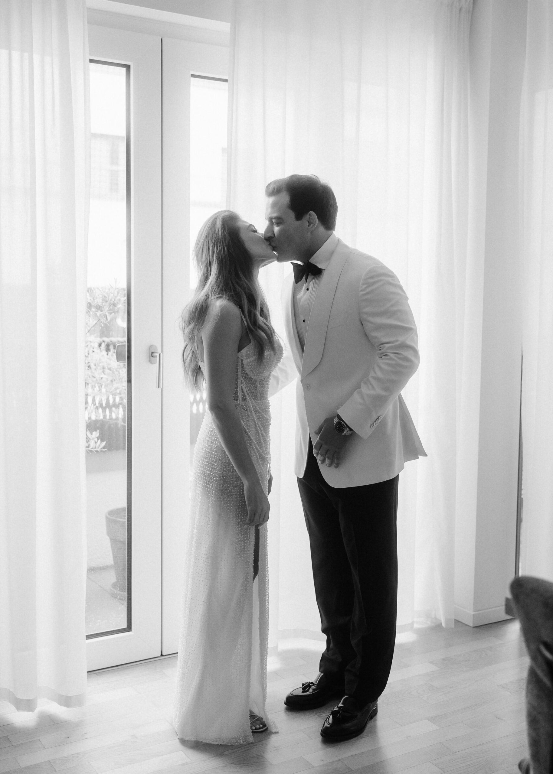 Die beiden starteten ihren Tag mit einem entspannten Getting Ready und einem anschließenden Glas Champagner in ihrer Wohnung in Frankfurt.