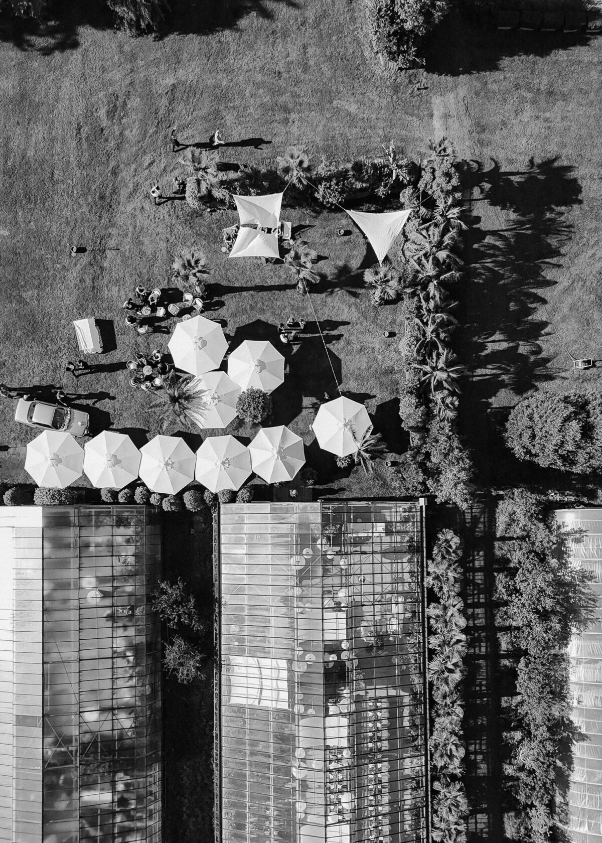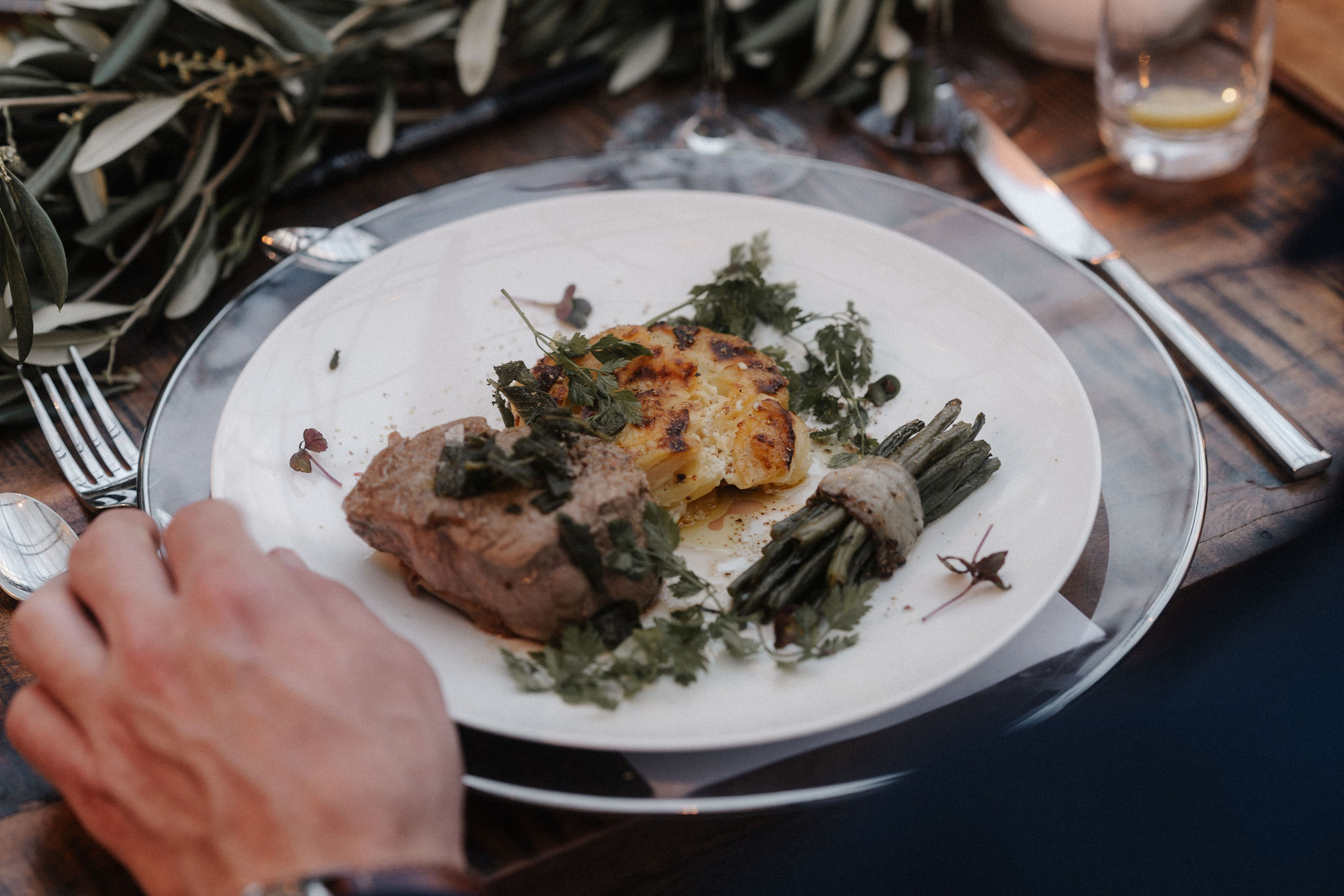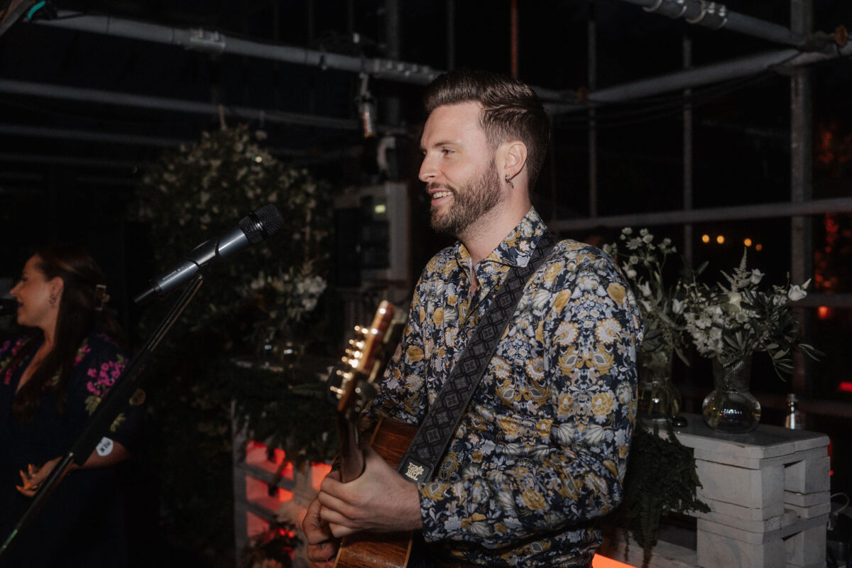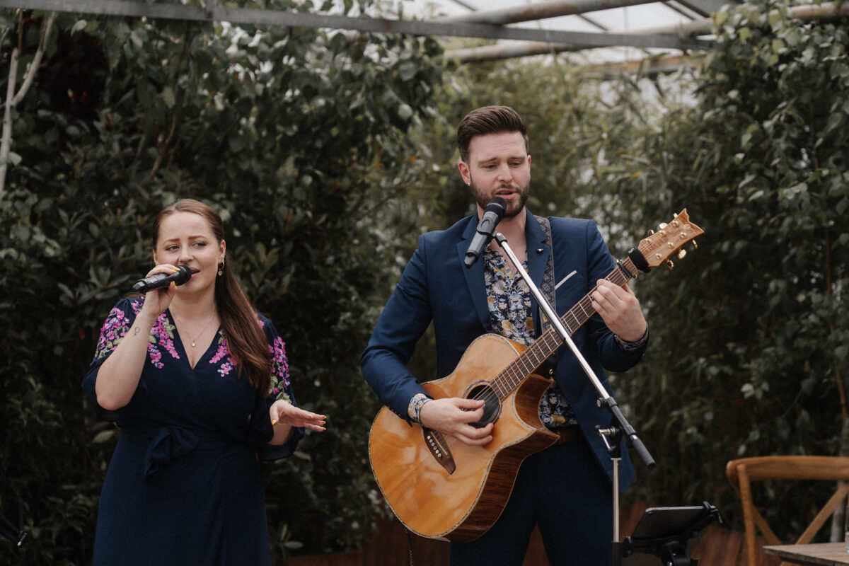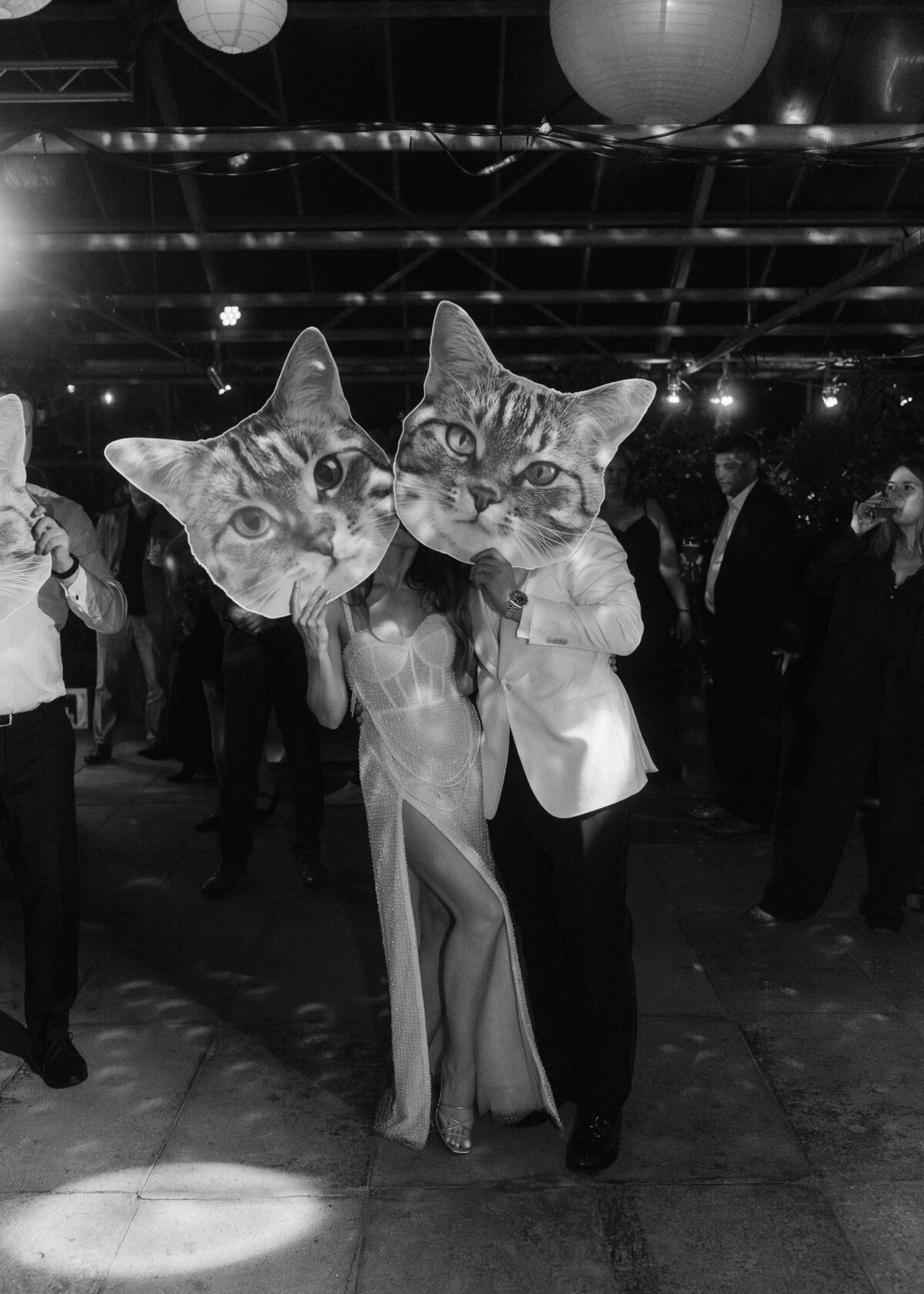 Mit einem Oldtimer fuhren sie zum Gewächshaus, wo die Gäste bereits auf eleganten Lounge-Möbeln Platz genommen hatten. Zwischen hohen Palmen, weißen Blüten und sanftem Licht gaben sich Laura und Felix unter einem üppigen Blumenbogen das Ja-Wort. Ein besonderes Highlight: Die Katze der beiden brachte – liebevoll vom Bruder der Braut getragen – die Ringe. Es war ein unvergesslicher Tag vom Start bis zur Party!