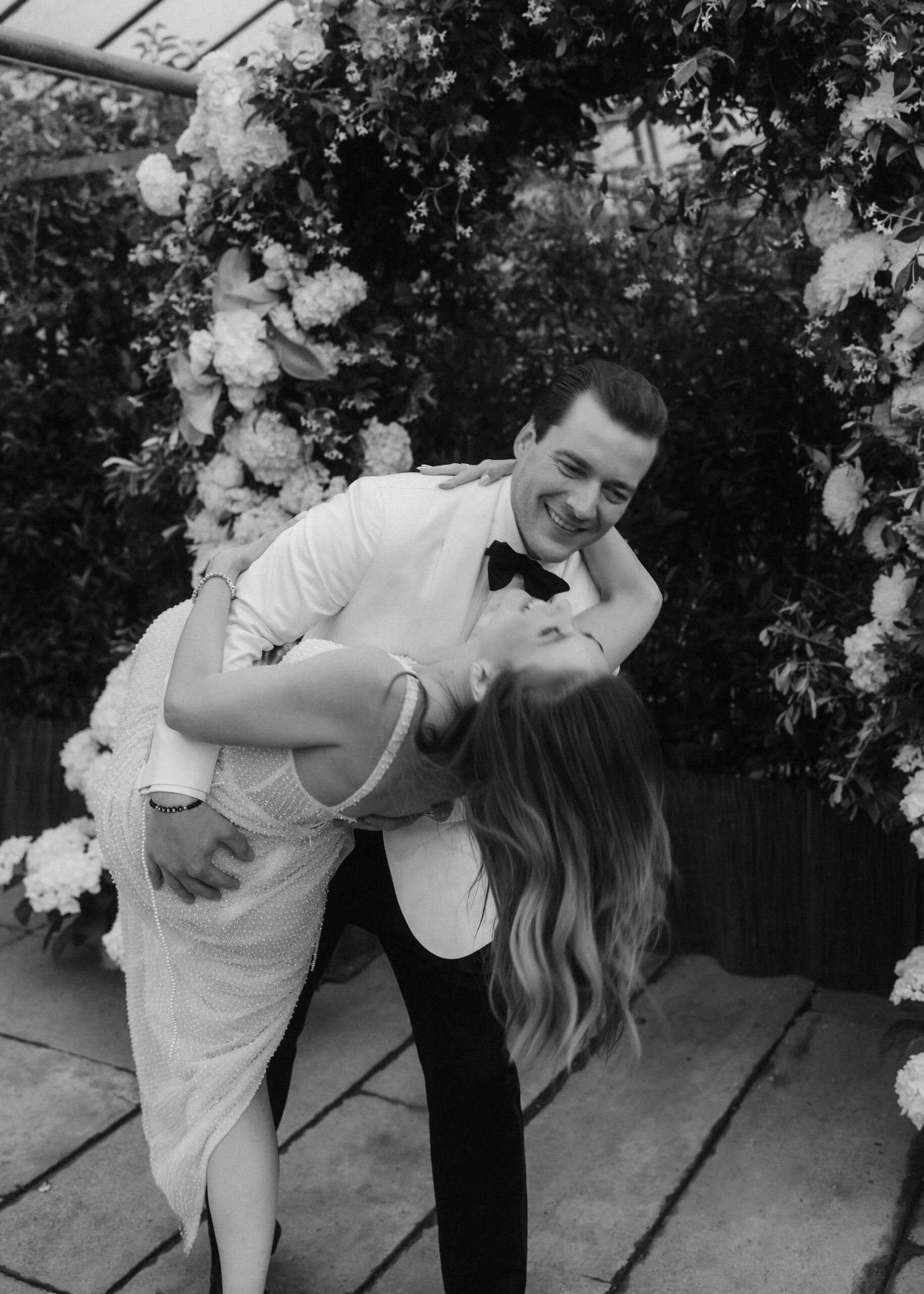 Die Hochzeit von Laura und Felix in der Gärtnerei Decher Events nahe Frankfurt fühlte sich an wie ein wundervoller Mix aus botanischem Garten und entspanntem Old Hollywood Glam.