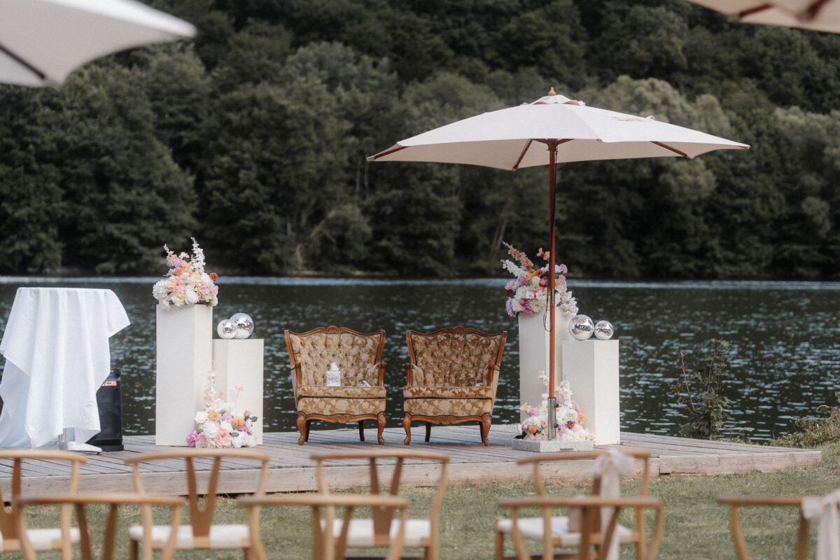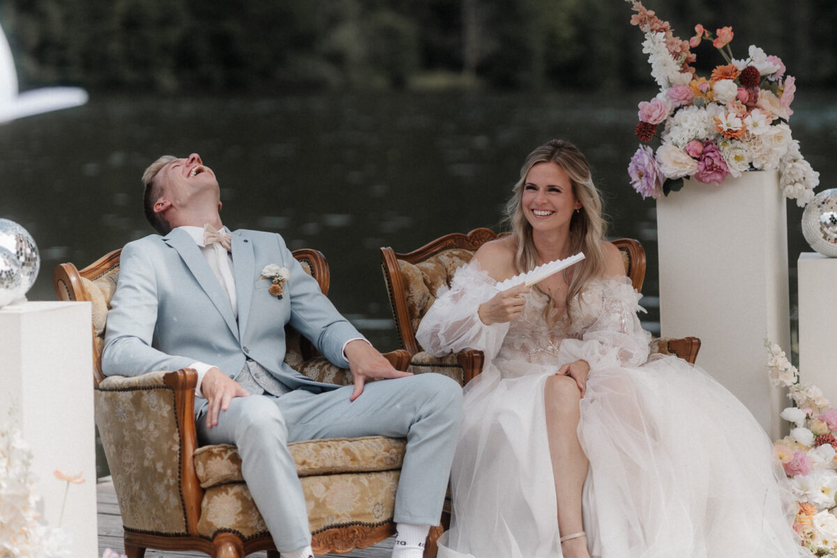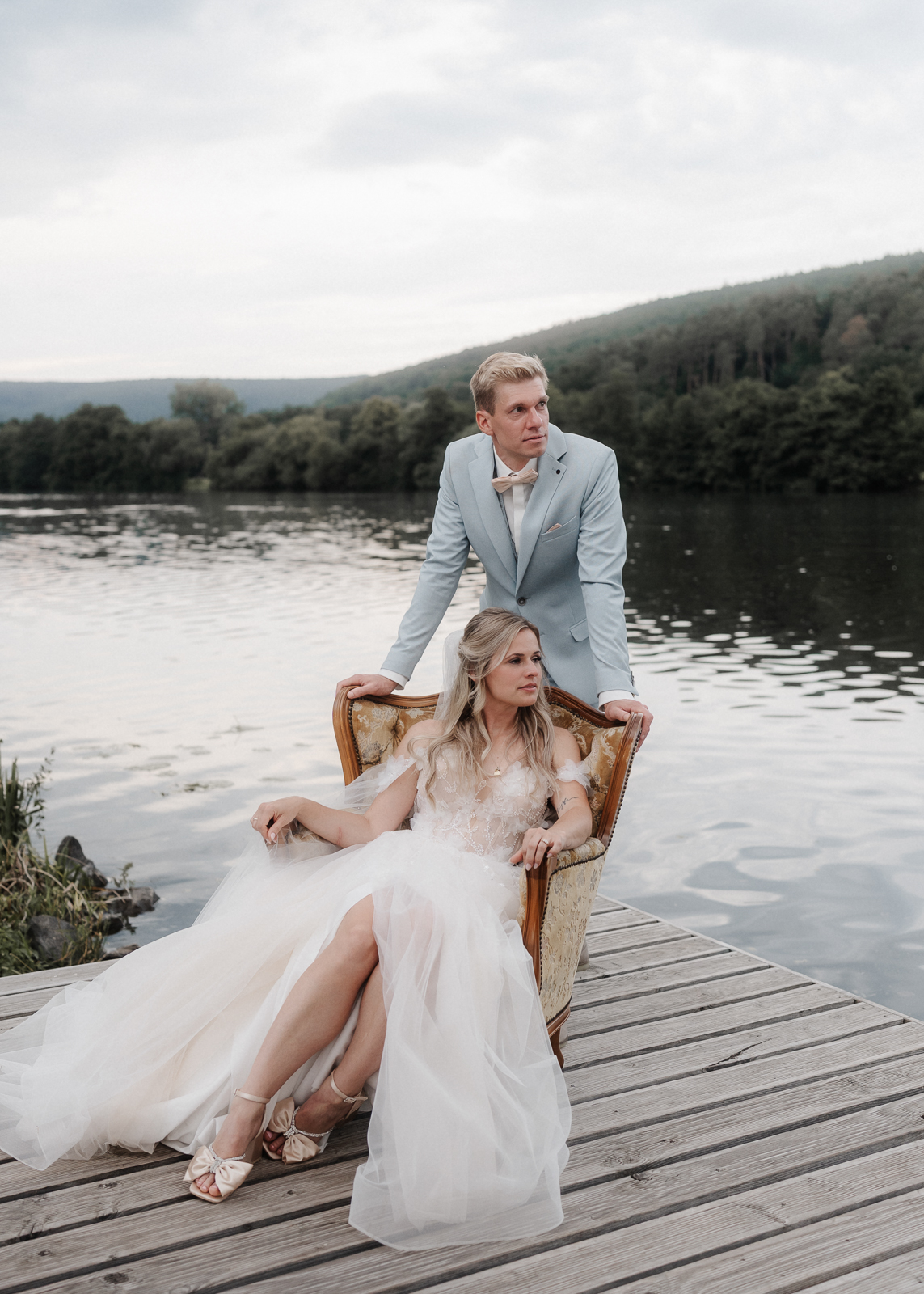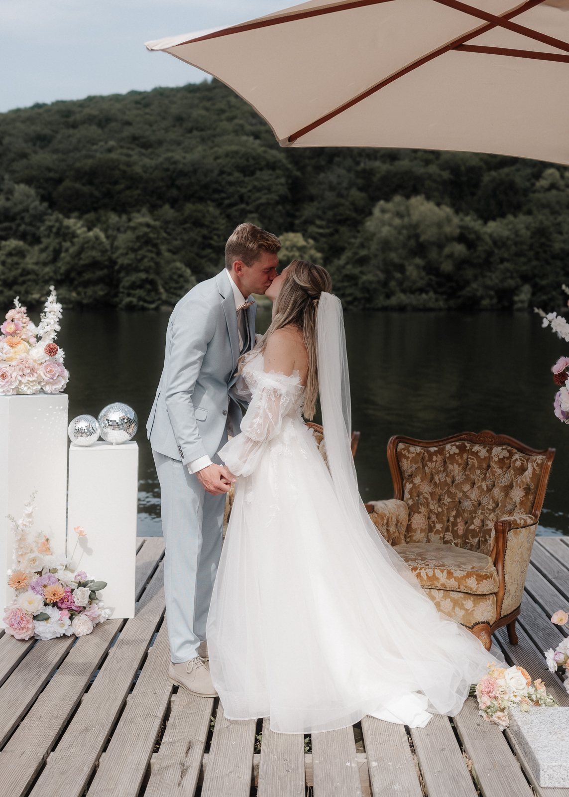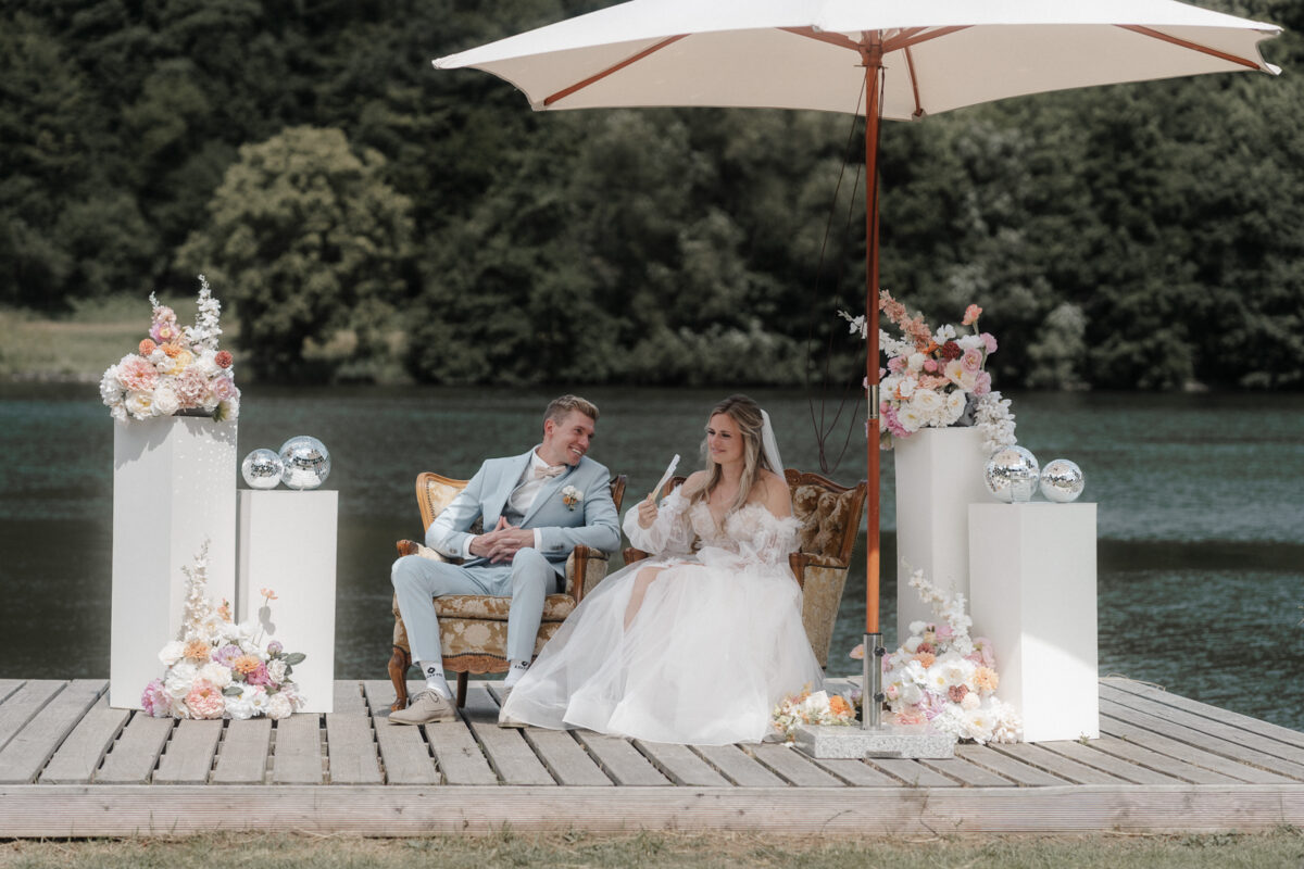 Theresa und Simon feierten ihre Hochzeit direkt am Wasser – modern, entspannt und mit ordentlich Festival Vibes.