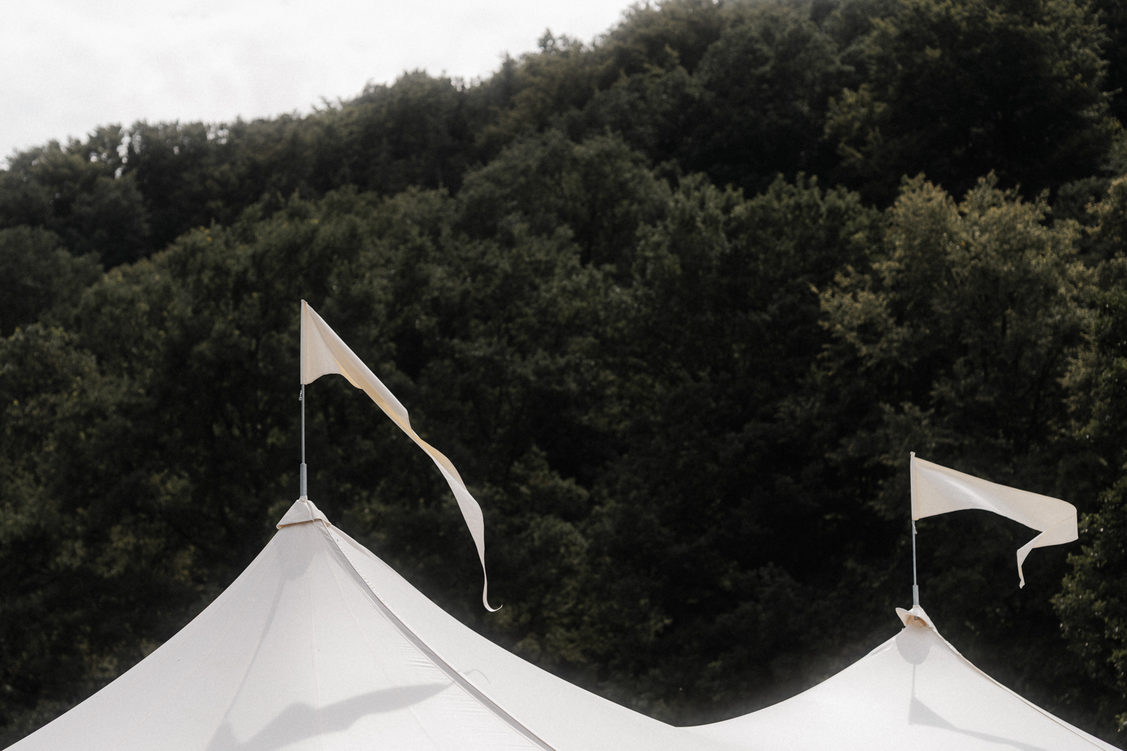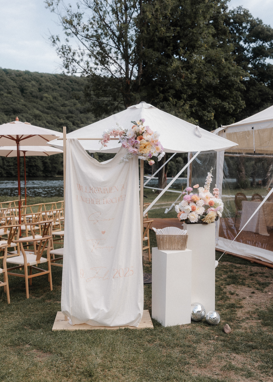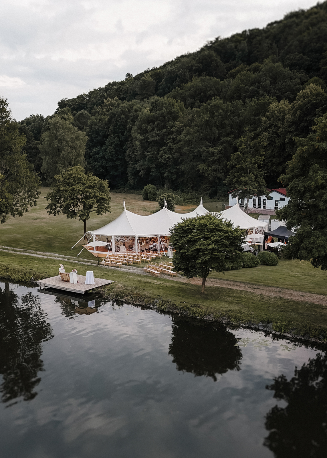 Die Trauung auf dem Steg, das Zelt direkt am Fluss und die tolle Musik schufen eine Atmosphäre, die sich eher nach Sommerfestival als nach klassischer Hochzeit anfühlte.