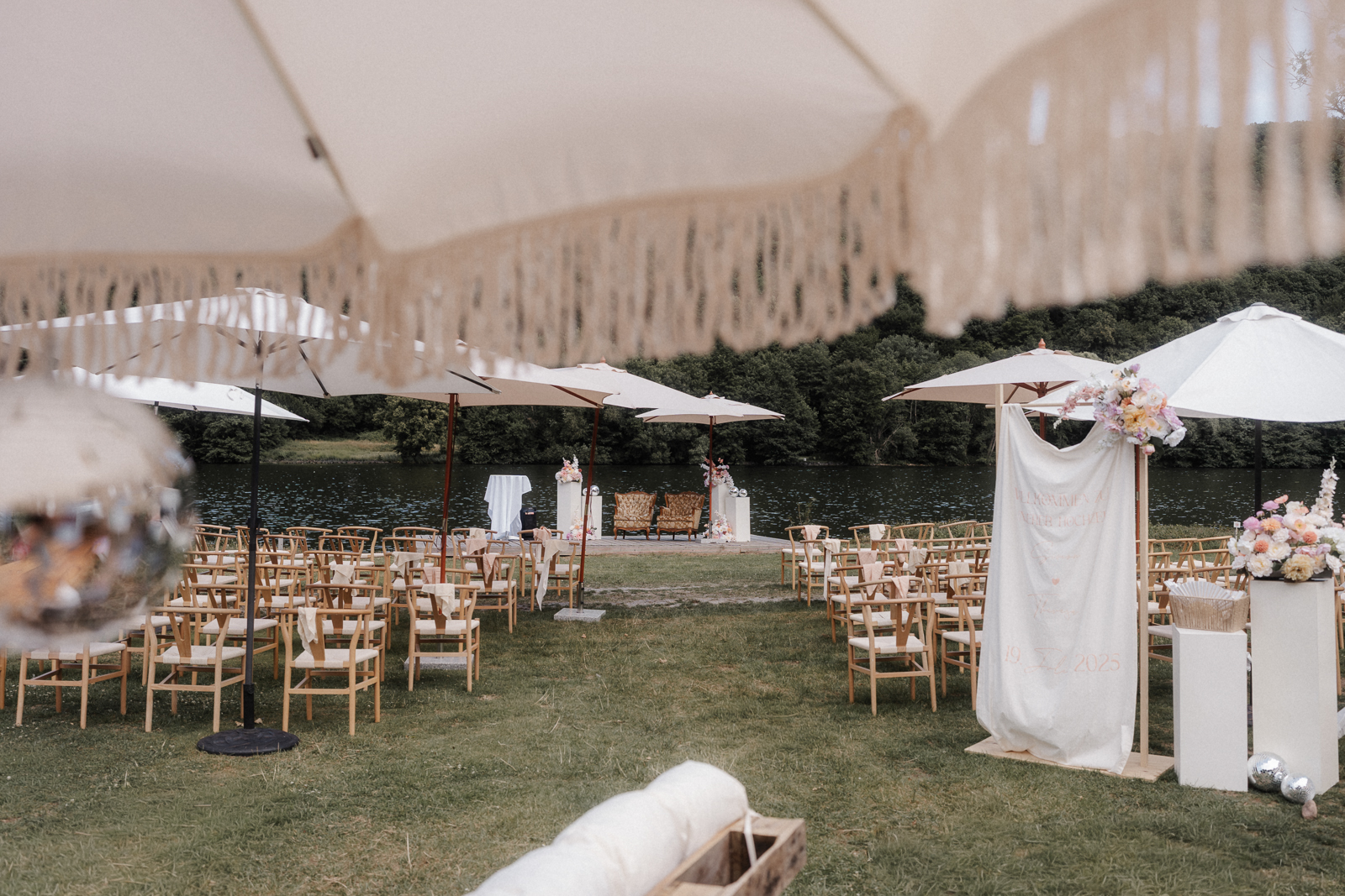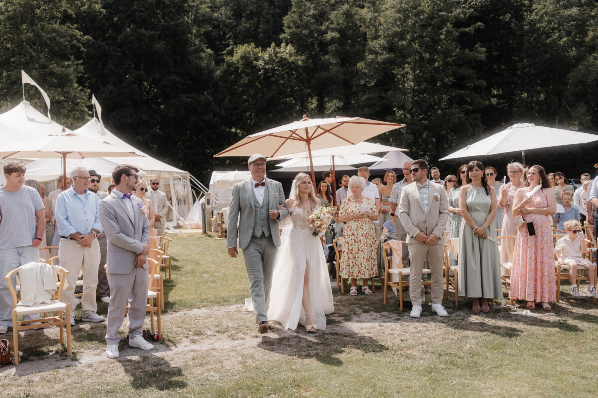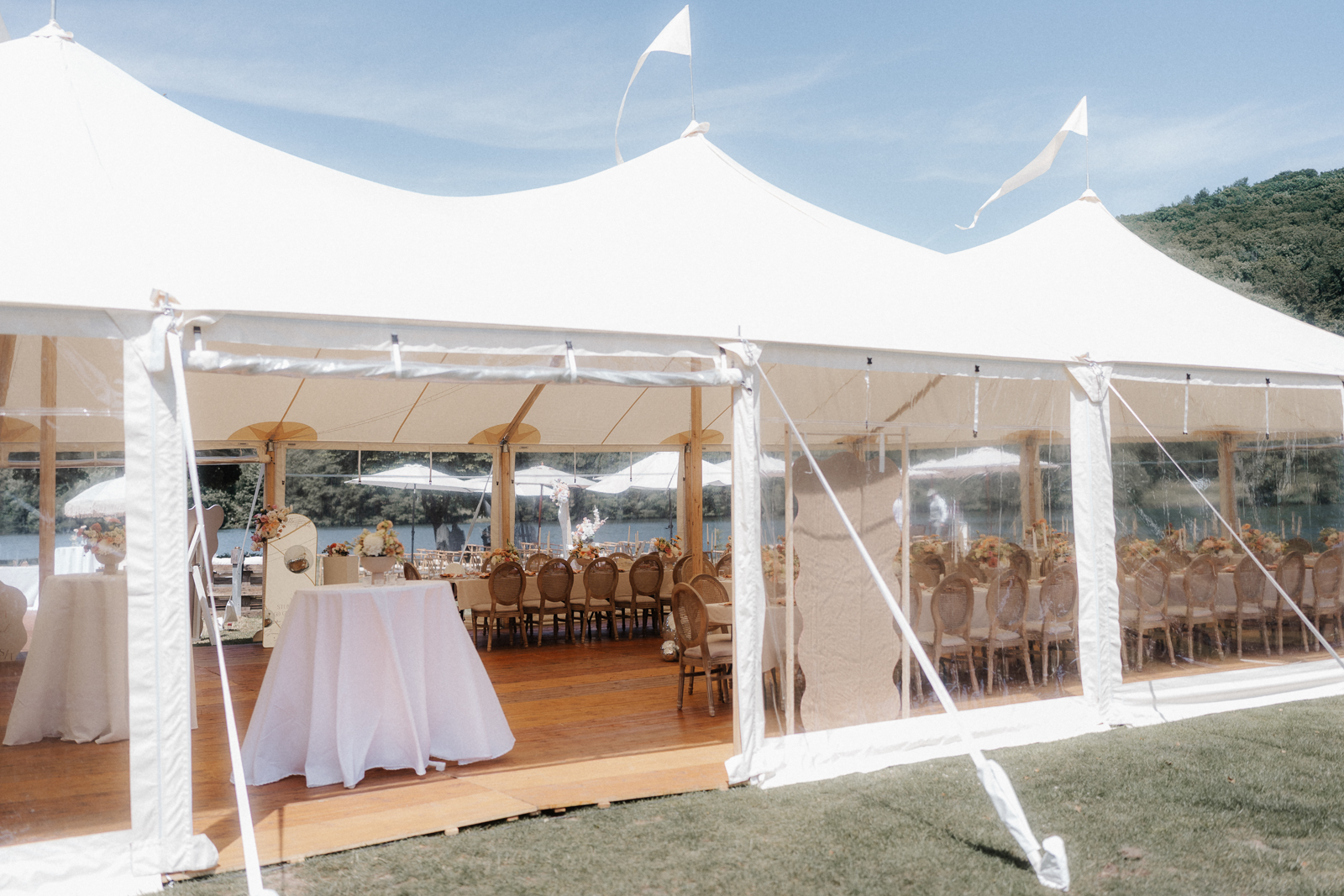 Die Trauung auf dem Steg, das Zelt direkt am Fluss und die tolle Musik schufen eine Atmosphäre, die sich eher nach Sommerfestival als nach klassischer Hochzeit anfühlte.